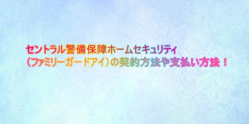 今回はセントラル警備保障ホームセキュリティ(ファミリーガードアイ)の契約方法・支払い方法についてまとめてきました。